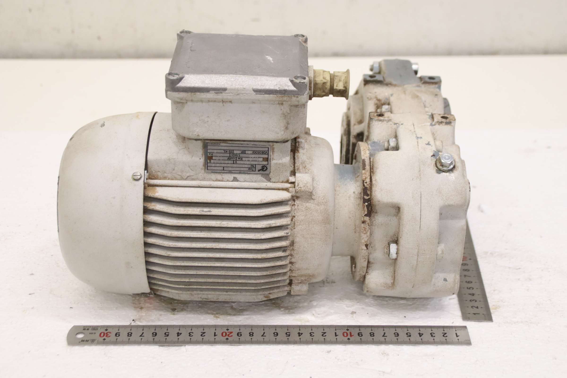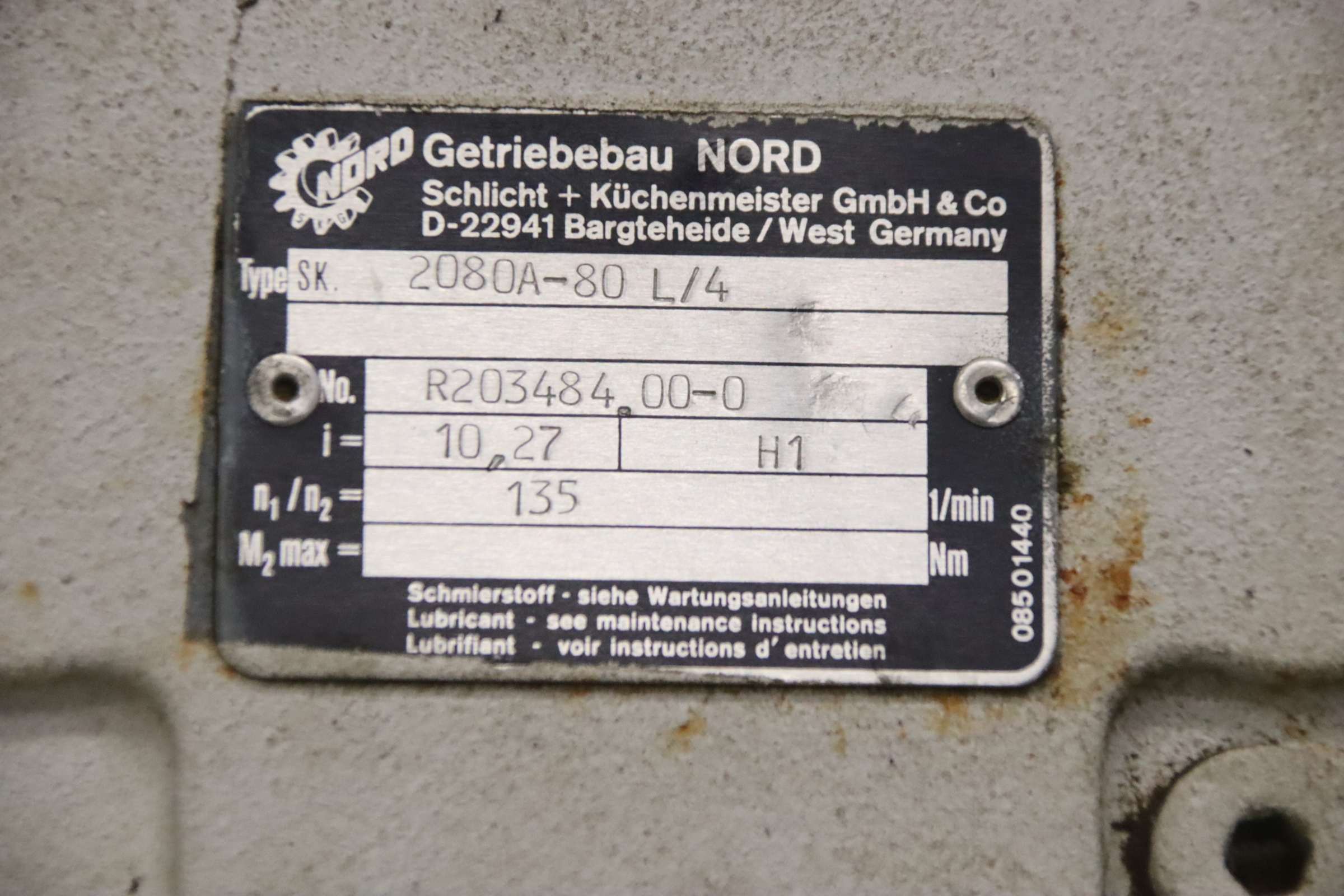 Flat geared motor, geared motor, electric motor, electric geared motor, flat geared motor, flat geared motor -Manufacturer: Nord, flat geared motor -Type: SK 2080A-80 L/4 i= 10.27 -Speed: 135 rpm -Engine: Type SK 80 L/4 -Power: 0.75 kW -Hollow shaft: Ø 30 x 100 mm -Protection class: IP54 -Dimensions: 340/310/H215 mm -Weight: 22.7 kg