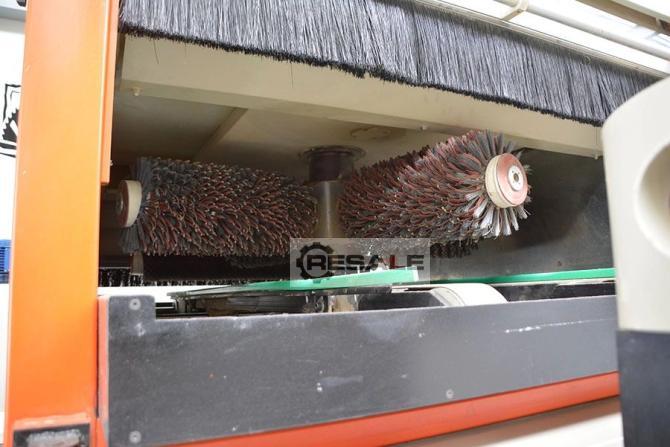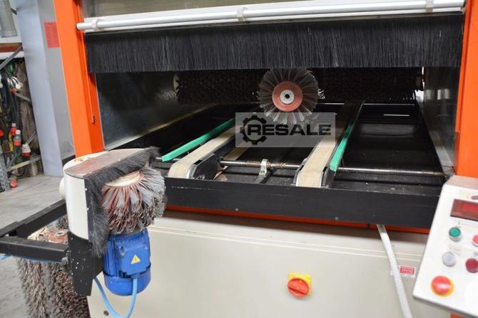 SPÉCIFICATIONS: Max. largeur d’usinage: 800mm Hauteur de travail: 150mm Puissance installée Kw: 3.0 2 unités de brossage composées de 4 brosses contrarotatives Ø250mm x 220 mm Tapis de transport avec contrôle de vitesse Contrôleur