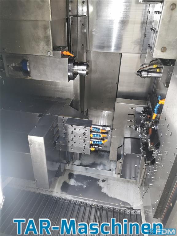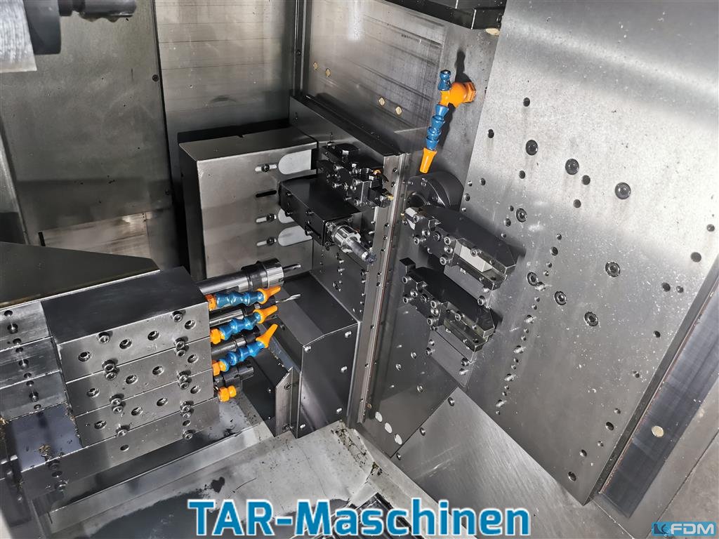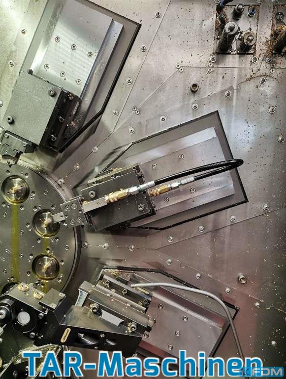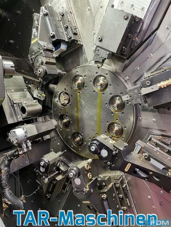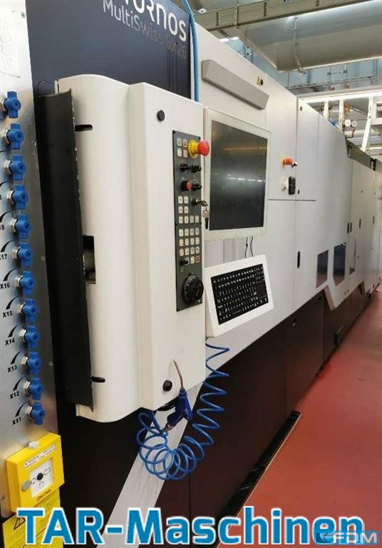 Article: CNC-controlled multi-spindle automatic lathe Manufacturer: Tornos Type: MultiSwiss 8x26 Yob: 2016 full cross slide configuration, counter spindle, part-pre-drawing device, 2 x driven tools, 3 x Y-axis, 1 rigid backworking, 1 x driven backworking, 2x 80 bar high pressure pumps optional: setting robot, manufacturer HandlingTech. The scope of delivery regarding the tooling equipment could be different like pictures. Please, contact us for getting more informations and pictures on mail@tar-mc.com or www.tar-mc.com
