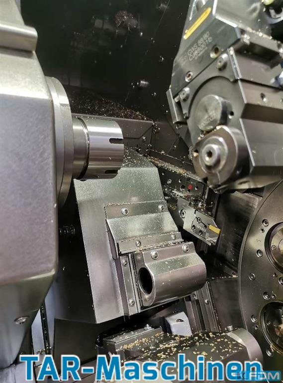 Diamètre de la barre 26 mm 12 outils tournants Longueur de tournage 180 mm Contrôleur FANUC 16i-TB Vitesse de la broche 12.000 tr/min Avec ravitailleur de barres