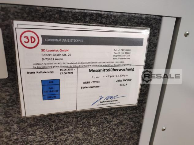 ZEISS MC 850 COURSE X-AXE: 850 MM COURSE Y-AXE: 1200 MM COUP Z-AXE: 600 MM APPROSS DE POIDS. 3800 KG DIMENSIONS (W X H X D): 1.6 X 1.56 X 2.95 MM