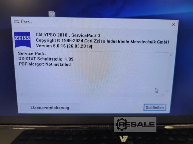 Machine à mesurer tridimensionnelle CNC Zeiss Prismo Navigator VAST GOLD Année de fabrication : 2008 Retrofit 2019 Dernière calibration : 02/2023 Plage de mesure : X= 1200 mm, Y= 1800 mm, Z= 1000 mm Caractéristiques de l’appareil, équipement : Commande C99 avec panneau de commande BP26_SE Capteurs VAST GOLD Magasin de changeur à bouton-poussoir 16 fois O7Hfq0Ie Plaque de changement à bouton-poussoir Accessoires pour boutons-poussoirs Compensation automatique de la température Balle de mesure Station de travail HP avec moniteur Logiciel Calypso Basic Options : Navigateur, PCM, Convertisseur pas à pas, Convertisseur QDAS et Rapports PiWeb Autres accessoires Autres options possibles